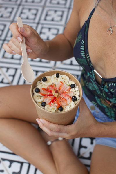 Get your daily greens at home or at the beach! Order your favourite plantbased meal, juice or smoothie online. And add if you need some organic fish, cheese or egg.